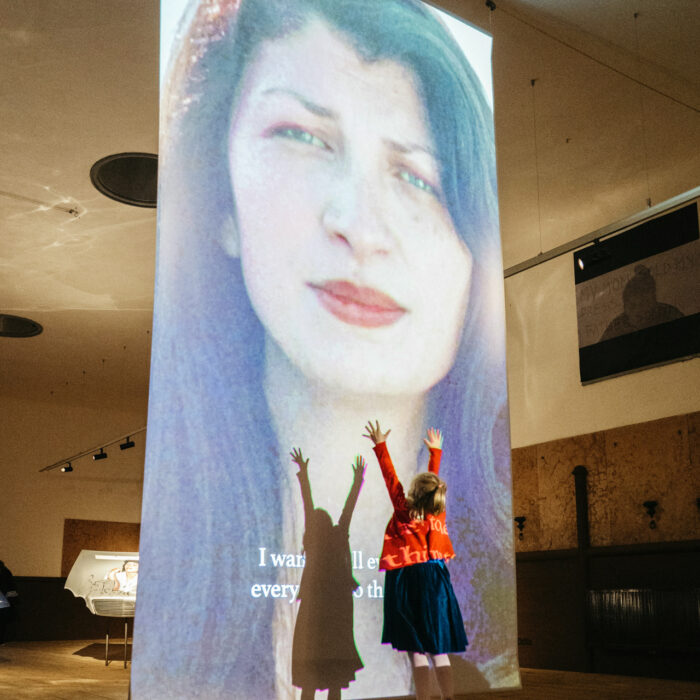 Die Video-Performance zeigt die Dokumentation ihrer Motherboards-Performance, in der die Künstlerin 200 Motherboards zerlegt und daraus schließlich 60 Gramm Gold extrahiert. Eine Installation aus vier auf Autohauben gemalten Porträts hält die Erinnerung an die erste große Hochzeit, die Selmans Familie nach dem Krieg besuchte, fest. Der Film „Crossing The Blue Bridge“ vervollständigt das Triptychon mit einer 30-minütigen Auseinandersetzung mit den Erinnerungen von Selmans Mutter an ein traumatisches Ereignis auf der sogenannten „Blue Bridge“. Begleitet wird die Eröffnung durch die performative Lesung der „Letters to Omer“.
