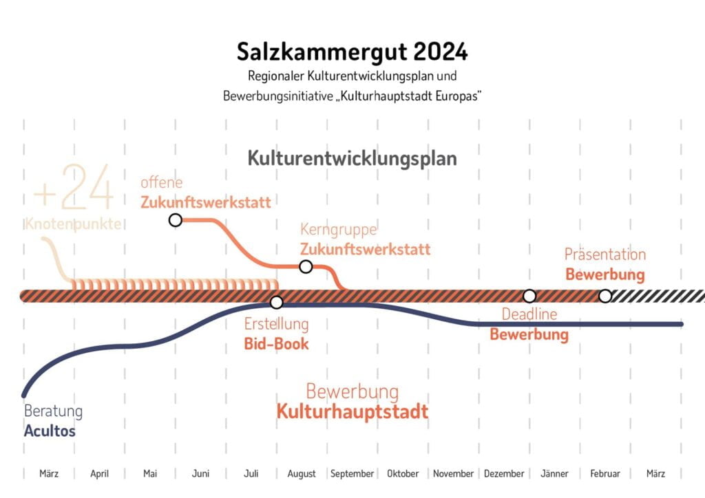 Das Resultat der Vorauswahlphase war das erste Bewerbungsbuch (Bidbook). In diesem werden die Chance des Titels für das Salzkammergut skizziert, die Vision und das Konzept vorgestellt sowie erste Projekte vorgestellt.