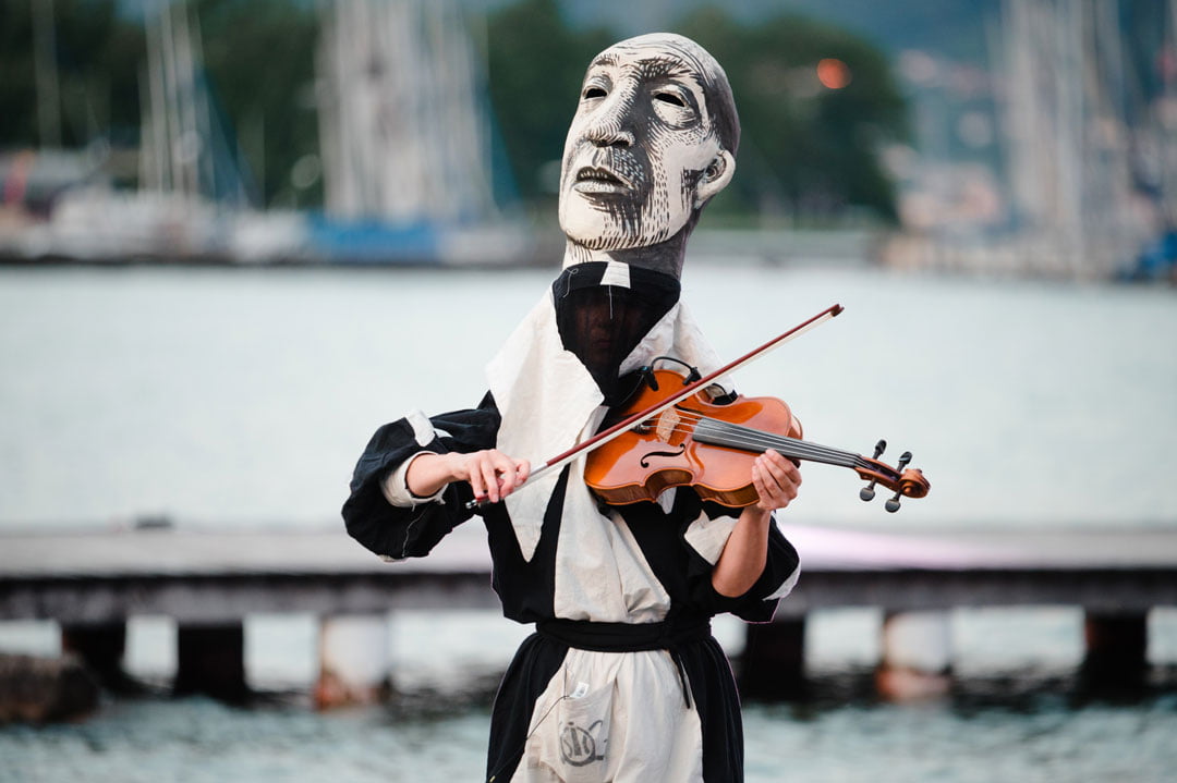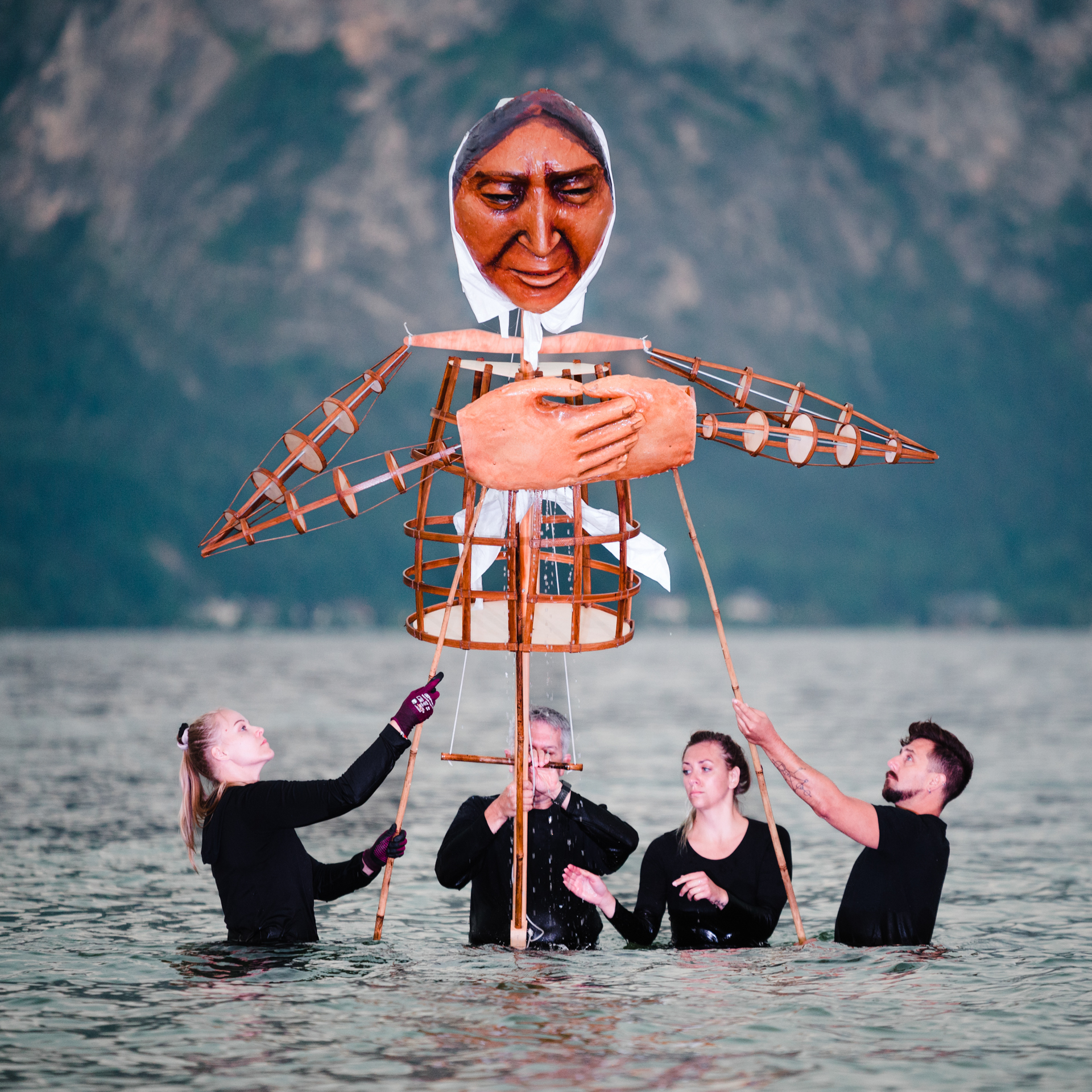 The time had come on July 30, 2022: for one entire week, 21 artists from Finland, Sweden, the UK, Hungary and Austria came together in Altmünster am Traunsee and the results of an intense week, the SALT LAB, were presented on the esplanade. A piece based on salt, water and freedom was developed from a combination of movement and dance, performative object art, sound and music: a regional interpretation of the Libertalia story as a performance. With the active support of the Altmünster community, the artists developed the piece for one whole week on location. The gymnasium became a sound and dance studio, the parish hall became a workshop where the objects as well as the masks and puppets for the performance were made.