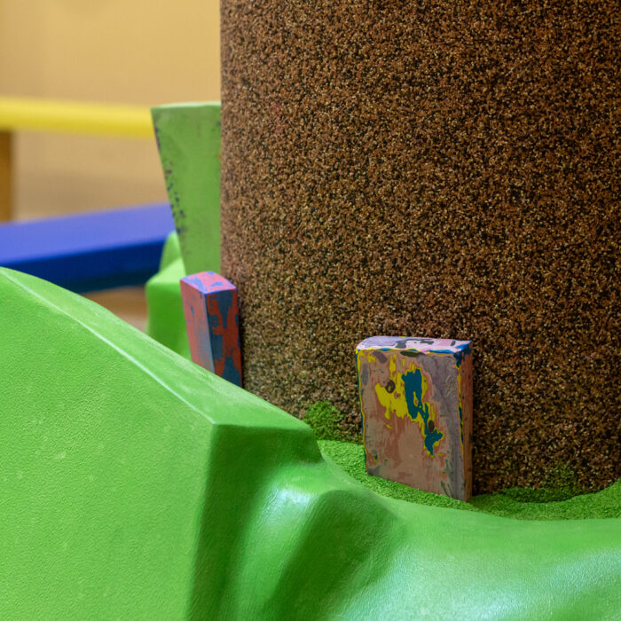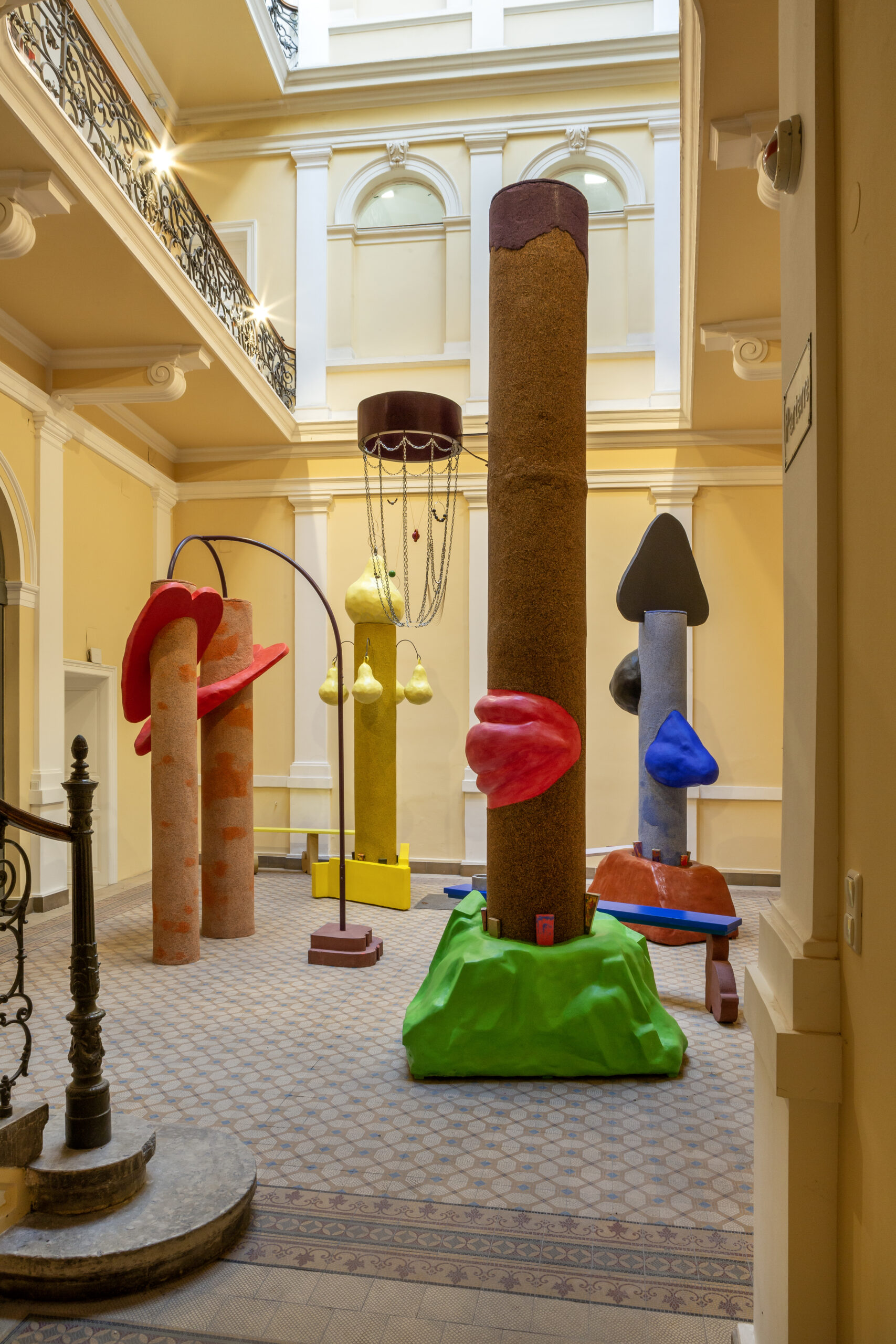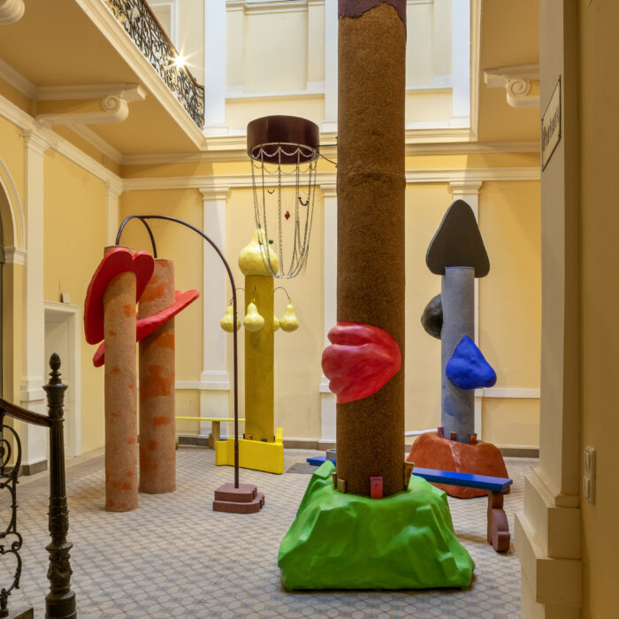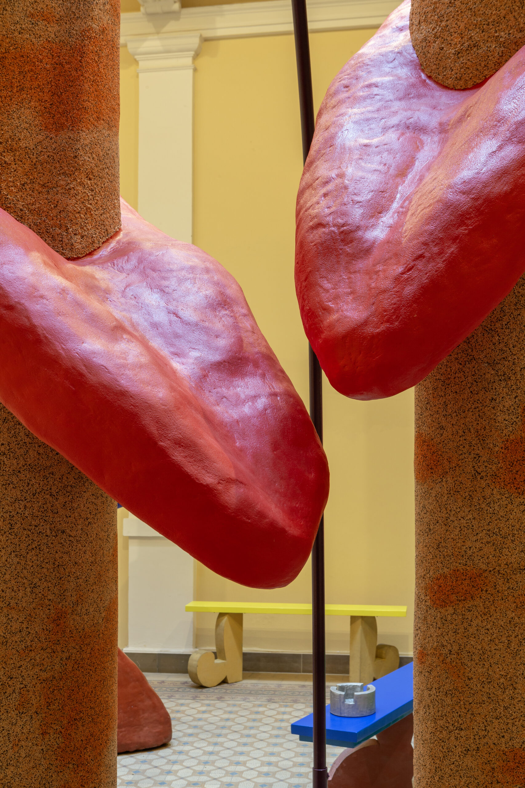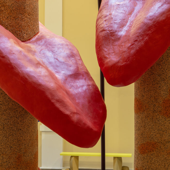 Sagadin employs humor and exaggeration in both her language of form and use of color to reveal mechanisms of inclusion and exclusion and to break with established codes of art observation. In a playful and subversive manner, her works refer to elements of pop and subculture and applied art. In the interaction between gender, language, and sculpture, they subvert existing norms and thematize sculpture as a form of visualization.