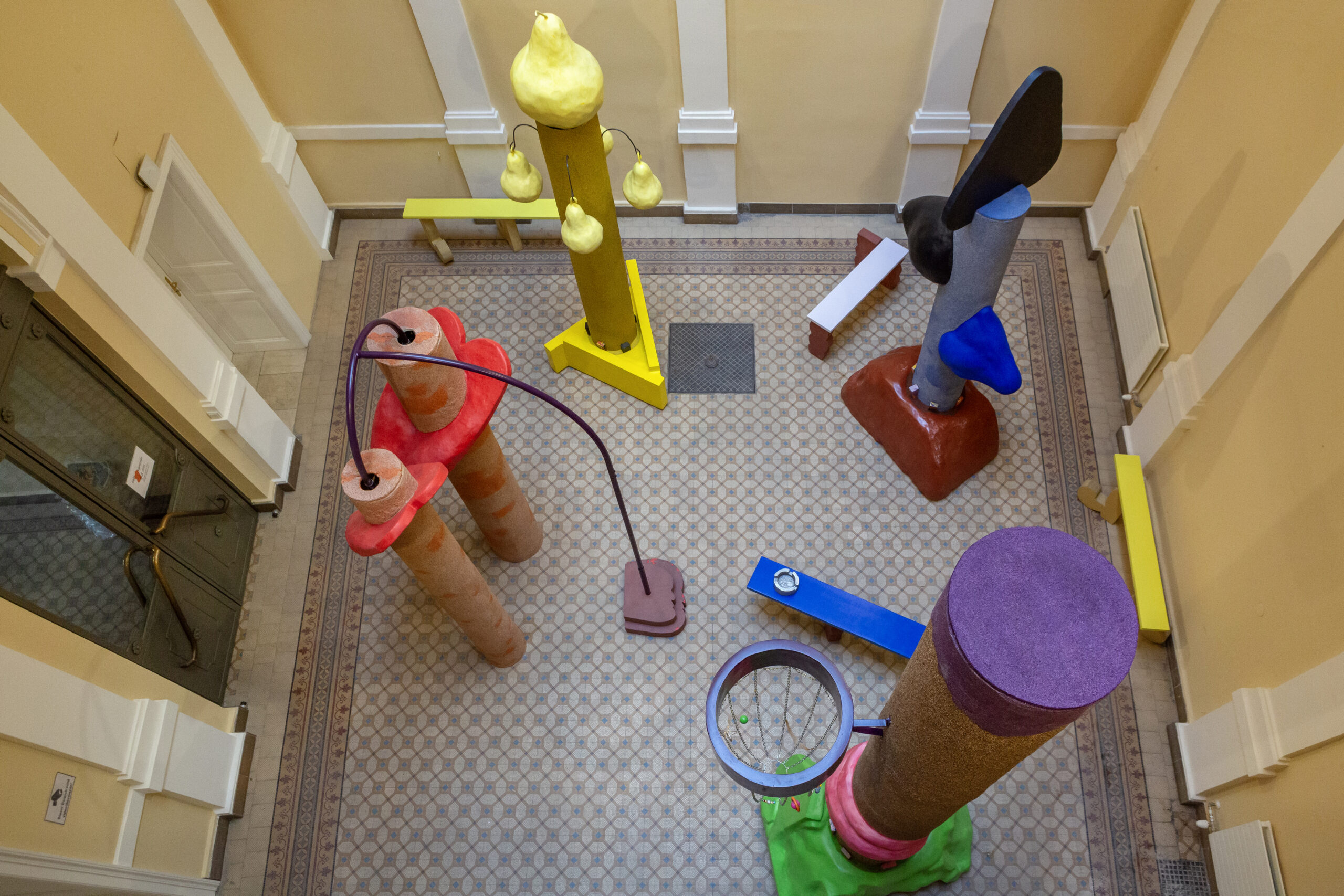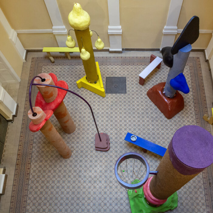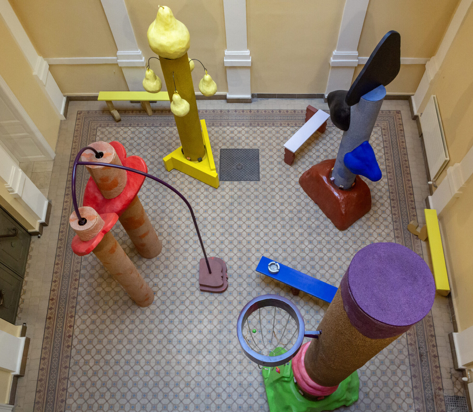 The artist Maruša Sagadin is redesigning the foyer of the Alte Post with her playful, subversive sculptures. Sculptural benches and pillars (the so-called Luv Birds) will be artistically placed in the form of a dense forest of sculptures to open up the space for visitors and ultimately create a place to linger and exchange ideas.