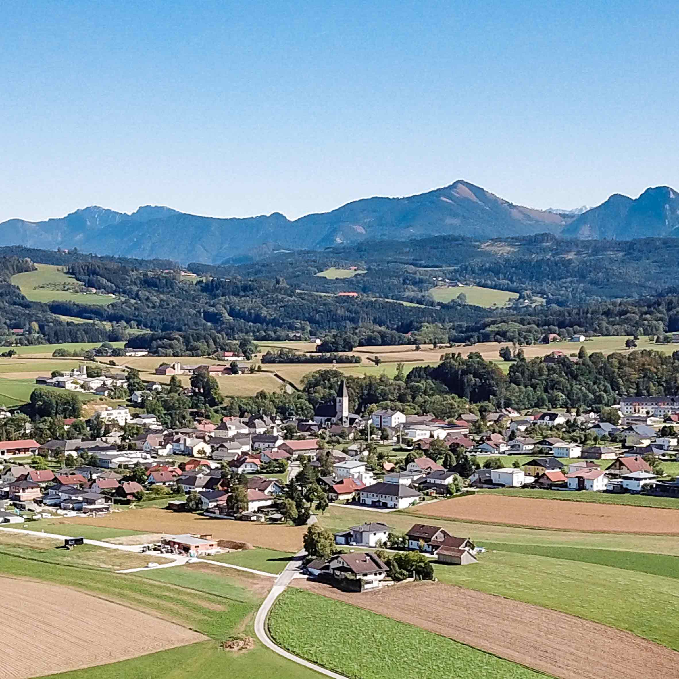 A place with a wide view. The municipal area covers 28 square kilometers. The highest elevations are the “Kogl” with the “Himmelreich” (767 meters above sea level) and the “Haberg/Oberriedl” (807 meters above sea level) as well as in the east the long stretched “Feichtenberg” (664 meters above sea level). From these elevations one can enjoy fascinating views of the surrounding mountains – over the Tote Gebirge and the Traunstein area in the south to the Höllengebierge in the southwest. The view from west to north extends from the Hausruck to the plains of central Upper Austria, sometimes even as far as the Mühlviertel and Bohemia. To the west, the forested Hausrückhöhe and the Höllengebirge form the horizon. Kirchham is crossed by the two “Laudach rivers”. The “Outer Laudach” rises in the area around the Traunstein near the Laudachsee. The “Inner (also “Dürre”) Laudach” draws its water from the wooded hills of the Hagenmühle district.