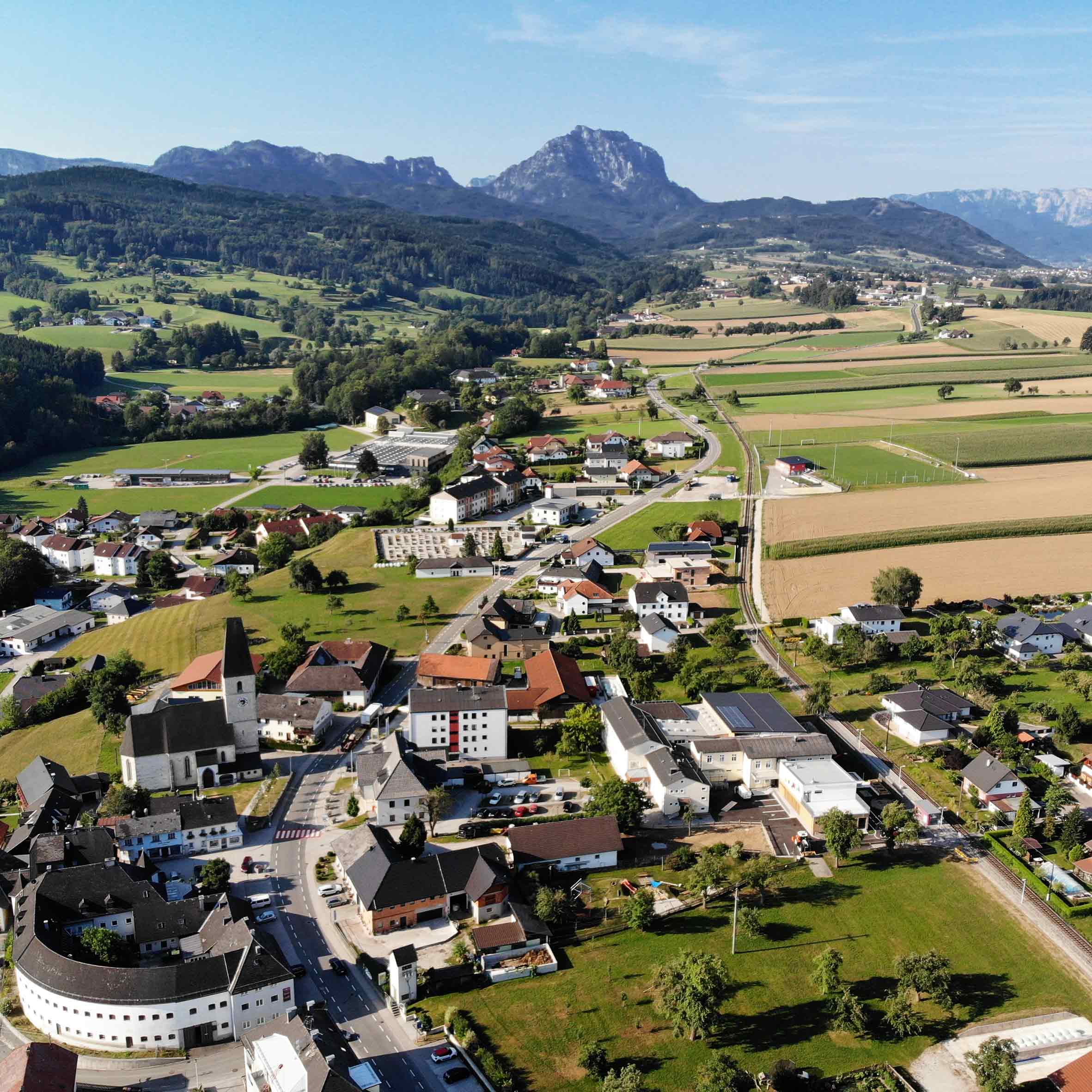The Traunseebahn connects… Kirchham with the district capital Gmunden and the market town Vorchdorf, and it is a convenient means of transport for students, professionals as well as for leisure travelers. Modern trains stop every 30 minutes at Kirchham, Kirchham Ort, Sportplatz, Laizing and Eisengattern. The attractive Park & Ride facility at the sports field has 54 marked parking spaces including an efficient e-charging station and a covered bicycle parking facility.