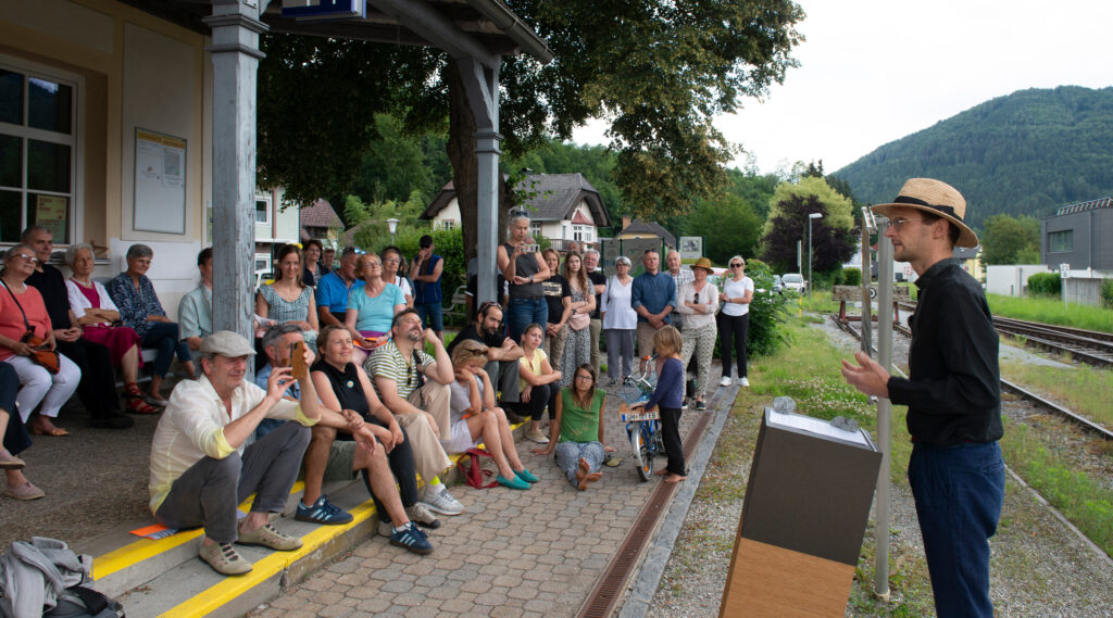 Bei diesem Projekt ging es um Besonderheiten und Eigenheiten von Orten im Salzkammergut. Künstlerinnen, Künstler oder Gruppen von außerhalb und manchmal von weit her setzten sich mit diesen Orten und ihren Gesellschaften auseinander und entwickelten Interventionen aufgrund ihrer Erfahrungen und Erlebnisse während der Besuche. Angestrebt wurden fruchtbringende Zusammenarbeit und der Dialog mit engagierten Menschen aus den Orten.
