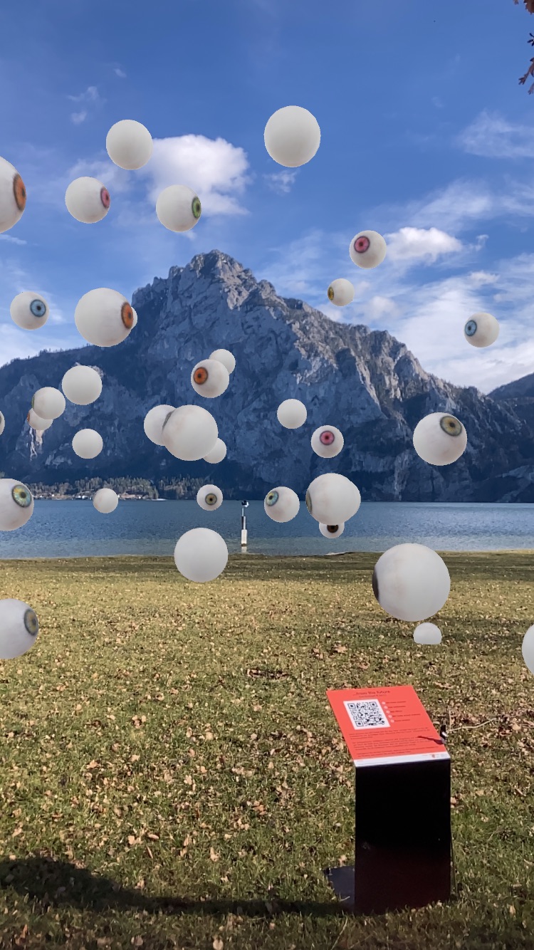 - Bräuwiese – Traunsee: Digitale Augen beobachten und verfolgen die Entdecker*innen (QR-Code am Seeufer, permanent zugänglich)