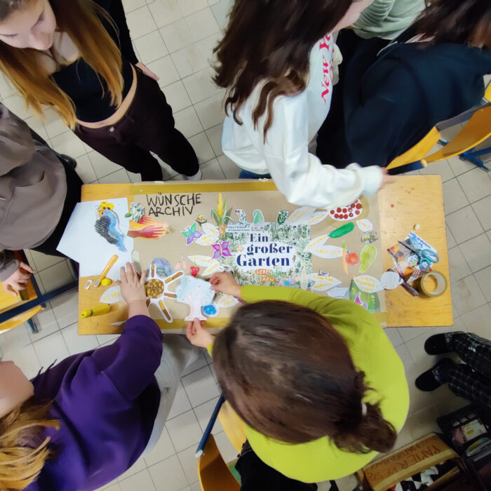 Von der Küchenwiese zum Klassenzimmer im Grünen: Schüler*innen der HLW Bad Ischl, eine höhere Schule für Wirtschaft, Soziales und Gesundheit, wirken seit 2022 an der Gestaltung eines Gartens am Schulgelände mit Künstler*innen und Expert*innen mit. Ausgehend vom Begriff der Fürsorge, der in der Ausbildung an der HLW eine wichtige Rolle spielt, geht es im Garten der Zeitläufe insbesondere darum, die Beziehung zur Zeit in sozialen Gefügen, in der Natur bis hin zu kosmischen Dimensionen herzustellen. In mehreren Workshops wurde zunächst die Umwelt der Schule genau unter die Lupe genommen, danach wurden Gestaltungsmöglichkeiten mit den Schüler*innen unmittelbar am Gelände ausgelotet. Eine bisher ungenutzte Fläche wird zu einem Ort der Biodiversität, der zugleich zum Lernen und zum Chillen da ist.