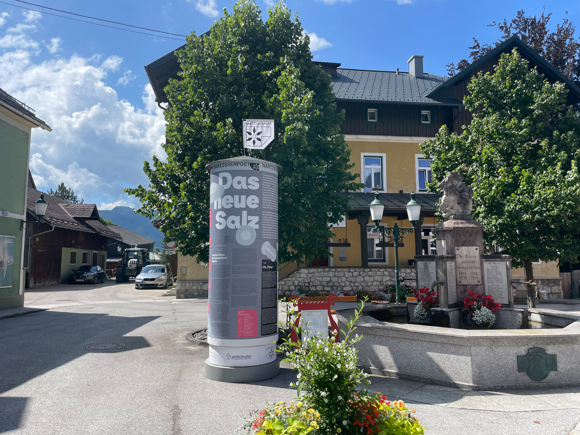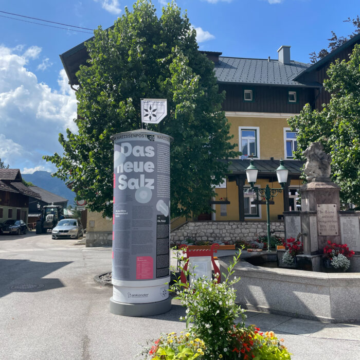 Die Narzissenpost ist als analoges, journalistisches Magazin konzipiert und wird gemeinsam mit interessierten Ausseer*innen vor Ort und in aller Welt sowie mit dem österreichischen Netzwerk Klimajournalismus auf Litfaßsäulen im öffentlichen Raum alle zwei Wochen im Zeitraum von Mai bis September 2024, in sechs Ausgaben, bespielt.