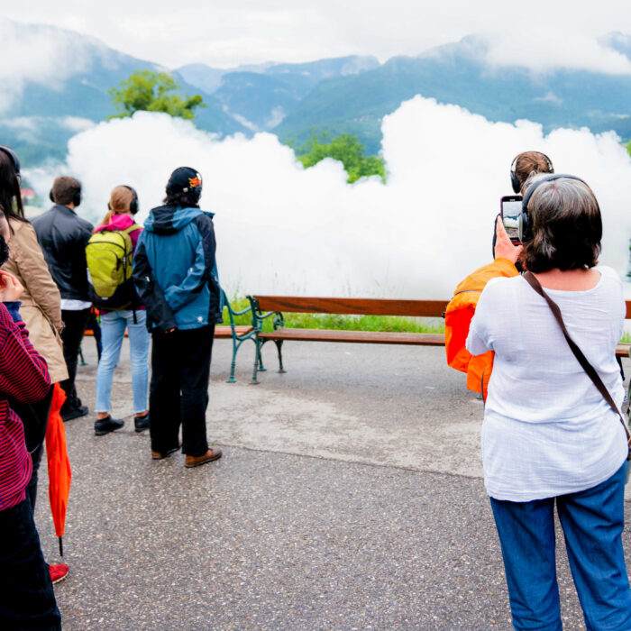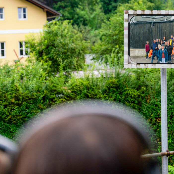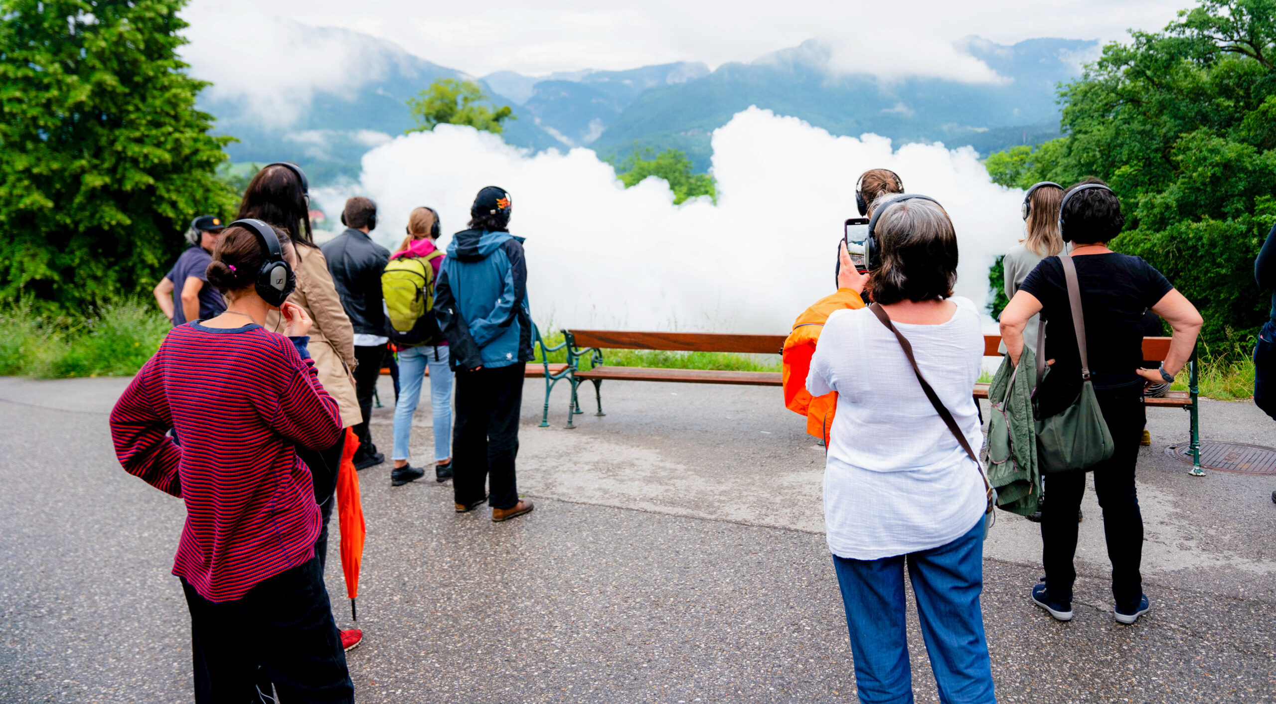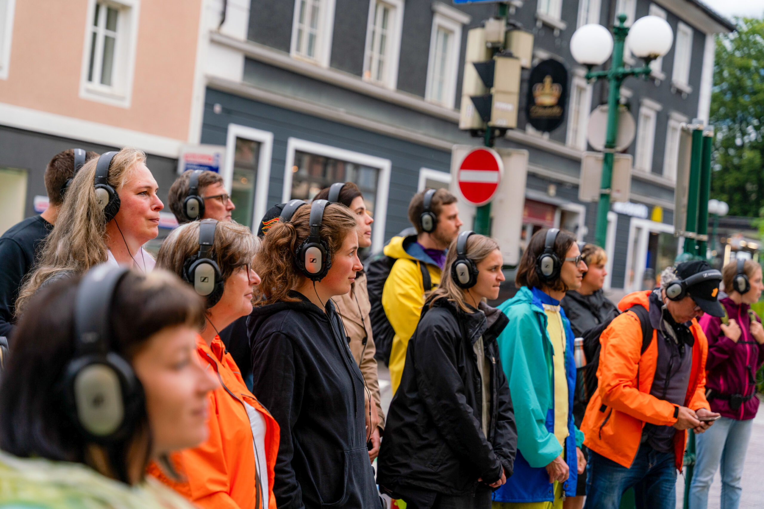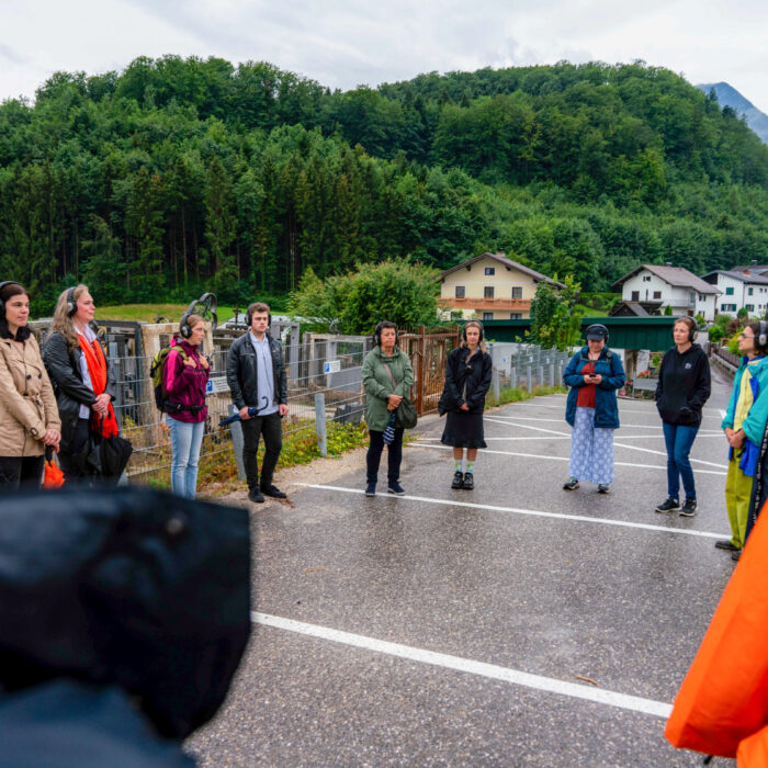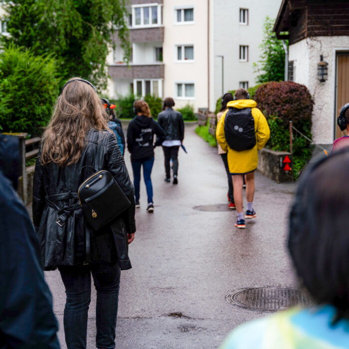 In Bad Ischl bricht eine Gruppe von bis zu 30 Menschen, ausgestattet mit Kopfhörern, in die Stadt auf. Geleitet werden sie von einer künstlichen Stimme, wie man sie von Navigations-Systemen kennt. Die Begegnung mit der Künstlichen Intelligenz verleitet die Gruppe zum Selbstversuch. Wie können wir gemeinsam Entscheidungen treffen? Wem folgen wir, wenn wir uns von einem Computerprogramm leiten lassen? – 30 Menschen beobachten sich gegenseitig, treffen individuelle Entscheidungen und sind doch immer Teil einer Gruppe. Während die Künstliche Intelligenz menschliches Verhalten aus der Distanz beobachtet, wird die Stimme mit jedem Schritt vertrauter. Unterwegs vertonen Kunstkopf-Aufnahmen und filmische Kompositionen die urbane Landschaft. Die Reise durch die Stadt fühlt sich mehr und mehr an wie ein kollektiver Film. Das Projekt bewegt sich als mobiles Forschungslabor von Stadt zu Stadt. Dabei baut jede neue ortsspezifische Version auf der Dramaturgie der Vor-Stadt auf und schreibt das Stück so immer weiter. – Das Stück beschäftigt sich mit traditionsreichen Orten und Begebenheiten in Bad Ischl.