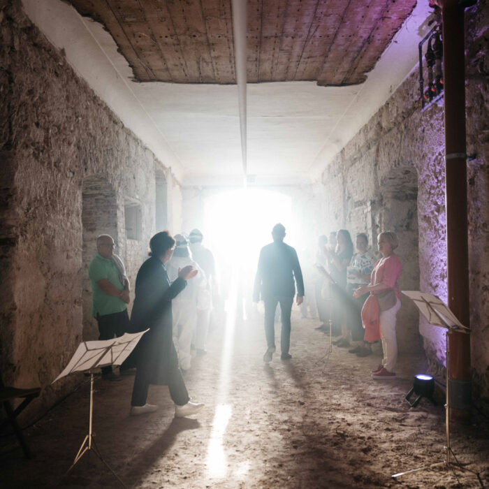 Vergangenheit und kulturelle Umbrüche in Biographie und Zeitgeschichte werden thematisiert. Zentrales Motiv ist ein Bergwerk und der Bergbau. Bergbau – ein Versuch, modernes Musiktheater in einem historischen Bau der Salzgeschichte erlebbar zu machen. Die literarische Welt wird mit der historischen zusammengeführt und durch die Intimität der Veranstaltung mit nur maximal 70 Personen unterstrichen.