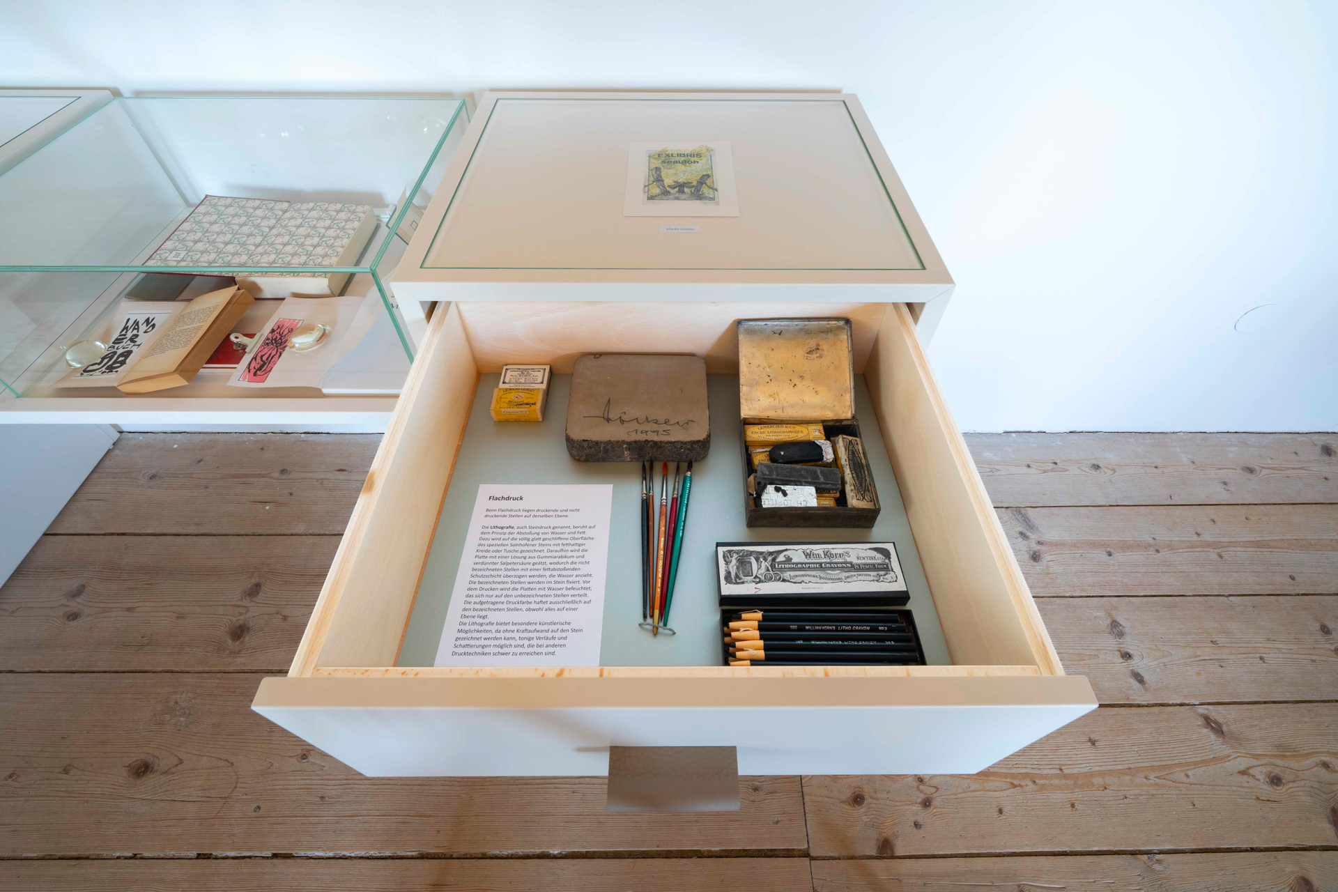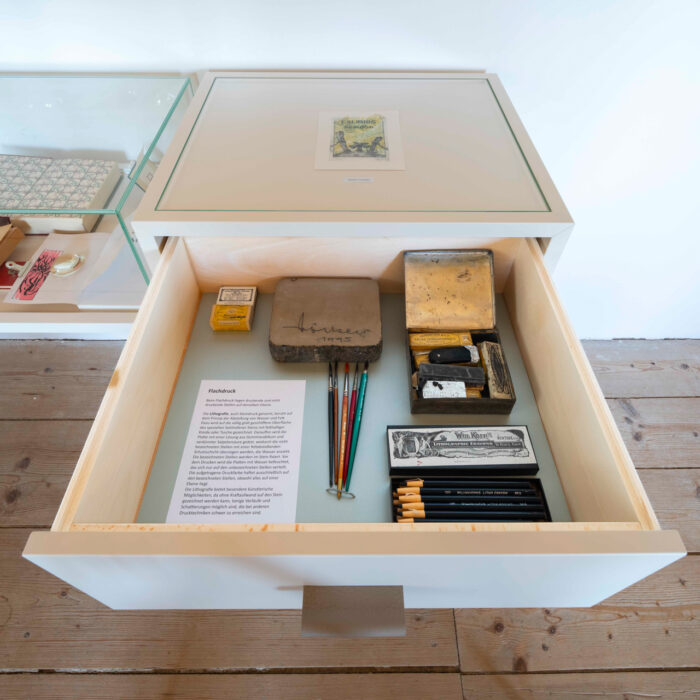 Das Bartlhaus verfügt über eine bedeutende Sammlung an Exlibris. Das sind kleine druckgraphische Zettel, die ursprünglich in Bücher geklebt wurden, um anzuzeigen, wem das Buch gehört. Später wurden die Blätter zu beliebten Sammlerstücken und namhafte Künstlerinnen und Künstler widmeten sich dem Medium. Das Bartlhaus veranstaltet seit 30 Jahren wechselnde Exlibris-Ausstellungen zu unterschiedlichen Themen. Im Kulturhauptstadtjahr möchte es diese druckgraphische Kleinform mit einer besonderen Aktion feiern, die ein spannendes Lebenszeichen zeitgenössischer Druckgraphik darstellen und die Geschichte des Exlibris mit anspruchsvollen aktuellen Arbeiten fortschreiben möchte. Etwa 20 Künstler:innen werden eingeladen, in einer frei zu wählenden Drucktechnik ein Exlibris für sich selbst in einer beliebigen Auflage zu erstellen. Durch die Auswahl der Künstler:innen wird versucht, möglichst viele verschiedene druckgraphische Techniken in der Ausstellung zu versammeln. Ein Exemplar der Auflage jedes teilnehmenden Künstlers und jeder teilnehmenden Künstlerin wird in der Ausstellung im Schriftmuseum gezeigt und geht dann in die Sammlung des Hauses ein.
