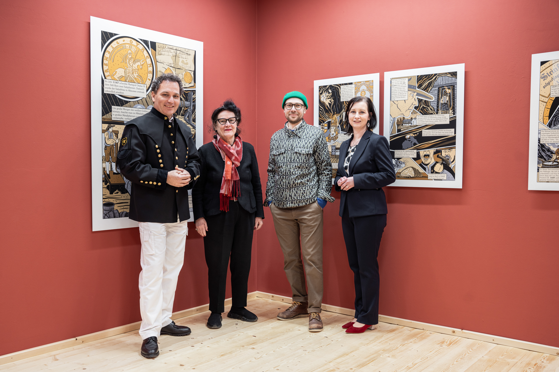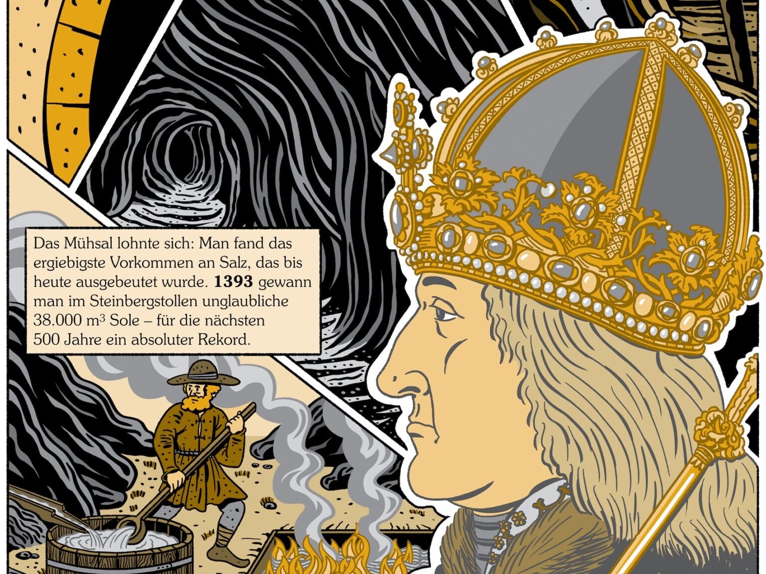 Bei diesem gemeinsamen Projekt der Salzwelten GmbH und der Kulturhauptstadt Bad Ischl Salzkammergut 2024 setzt sich der Comickünstler Simon Schwartz mit dieser wechselvollen Geschichte des Altausseer Salzbergs auseinander. Der vielfach prämierte Künstler, der seine Comics und Illustrationen u.a. in der Frankfurter Allgemeinen Sonntagszeitung und in „Die Zeit“ veröffentlicht, nähert sich mit dieser Graphic Novel der bewegten Geschichte des Salzbergwerks Altaussee von der Steinzeit bis zur NS-Zeit, sowie der im Berg gelagerten Kunstschätze und deren spektakuläre Rettung. Das Ergebnis ist eine frei zugängliche Ausstellung im Steinberghaus.