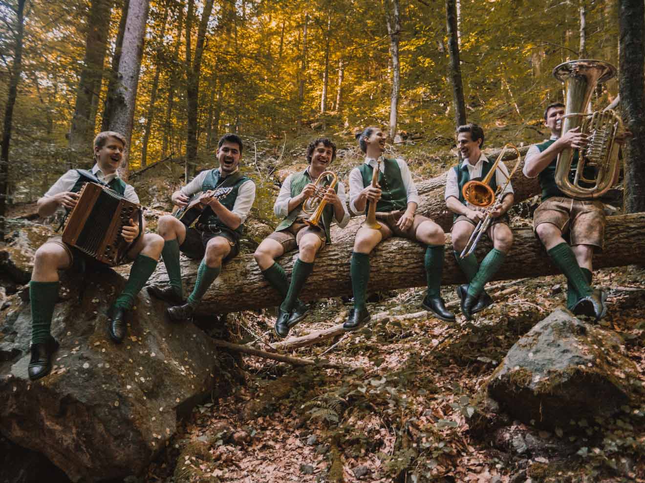 Der Name „Freigarten Blås“ basiert auf der Adresse des Kindergartens, in dem auch heute noch zwischen Schaukelpferden und Plüschhasen fleißig geprobt wird. Was den ganz speziellen Sound ausmacht? Es ist wohl die Mischung aus selbstgestrickten Arrangements und Eigenkompositionen, die Liebe zu Oberkrainerklängen, aber auch das Bewusstsein für den Drive alter Volksweisen — und nicht zuletzt eine fette Portion Liebe zur Musik, die alle sechs Musiker eint.